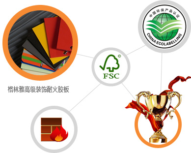 • 格林雅耐火板通過SGS、國家防火安全認證、環保甲醛釋放量認證,您的放心之選